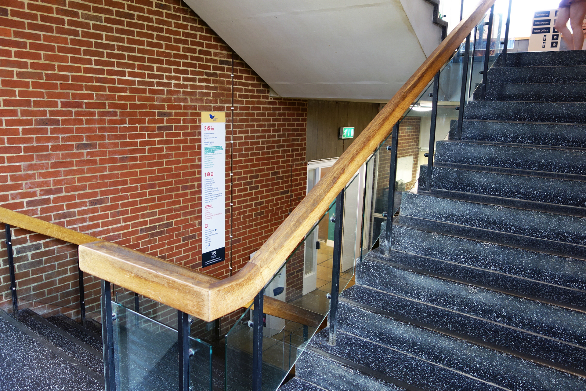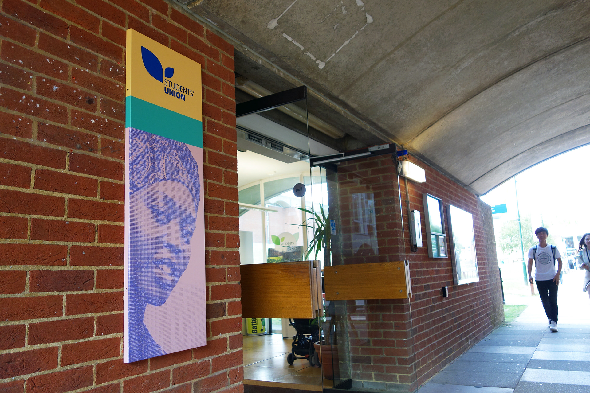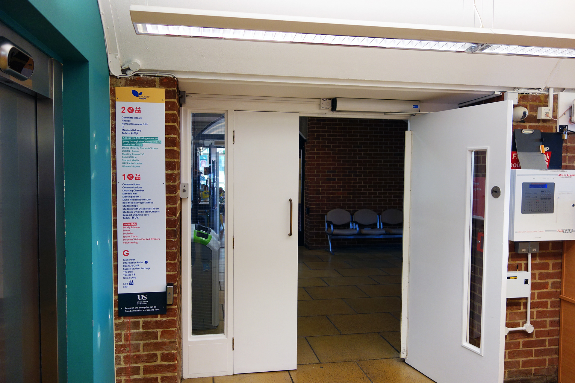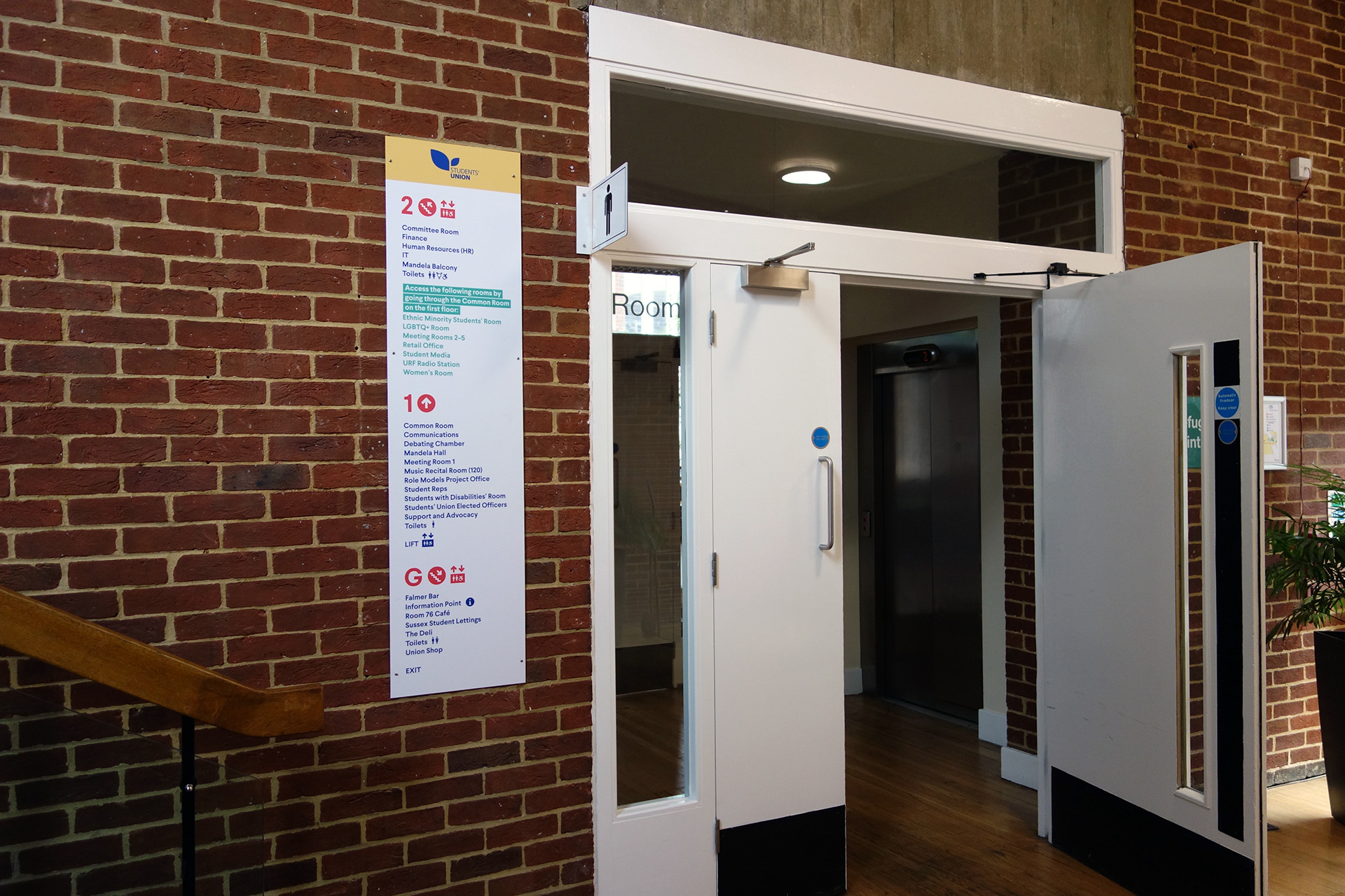 Falmer House is a significant building located on the campus grounds at The University of Sussex. Designed by Basil Spence and an exemplar example of modern Brutalist architecture, the building was been awarded Grade 1 status in 1993 being of ‘exceptional interest’. Commissioned by the Students Union to create new wayfinding and signage around the building that adhered to their new identity, the project required listed building sensitivities and the need to clearly direct and inform students, staff and visitors around a fairly complex building. Fabrication and installation by Standard 8.