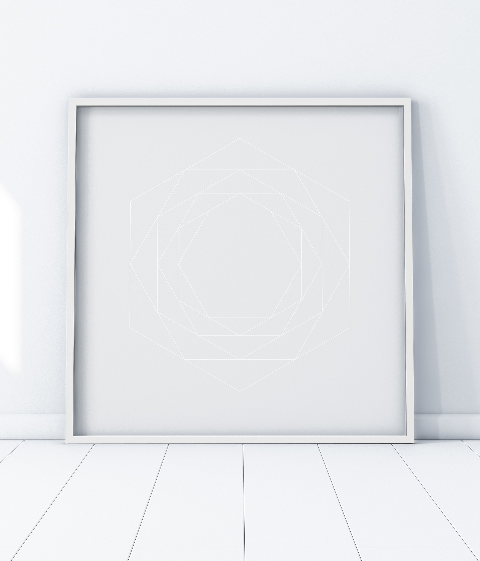 This series uses the outlines of six descending hexagons to make a geometric form which I've named Star – printed in spot colour whites, so that the design is subtle although visible.