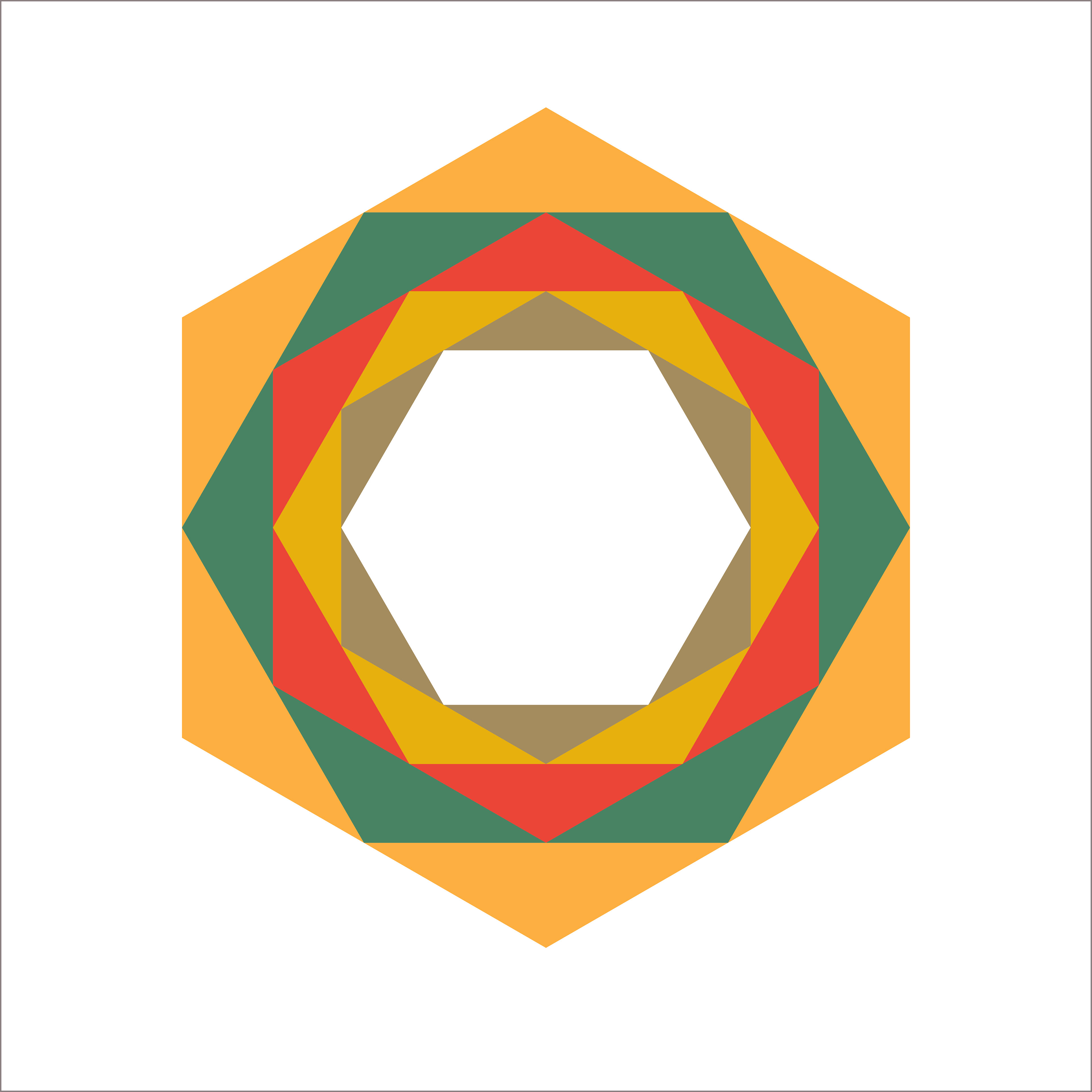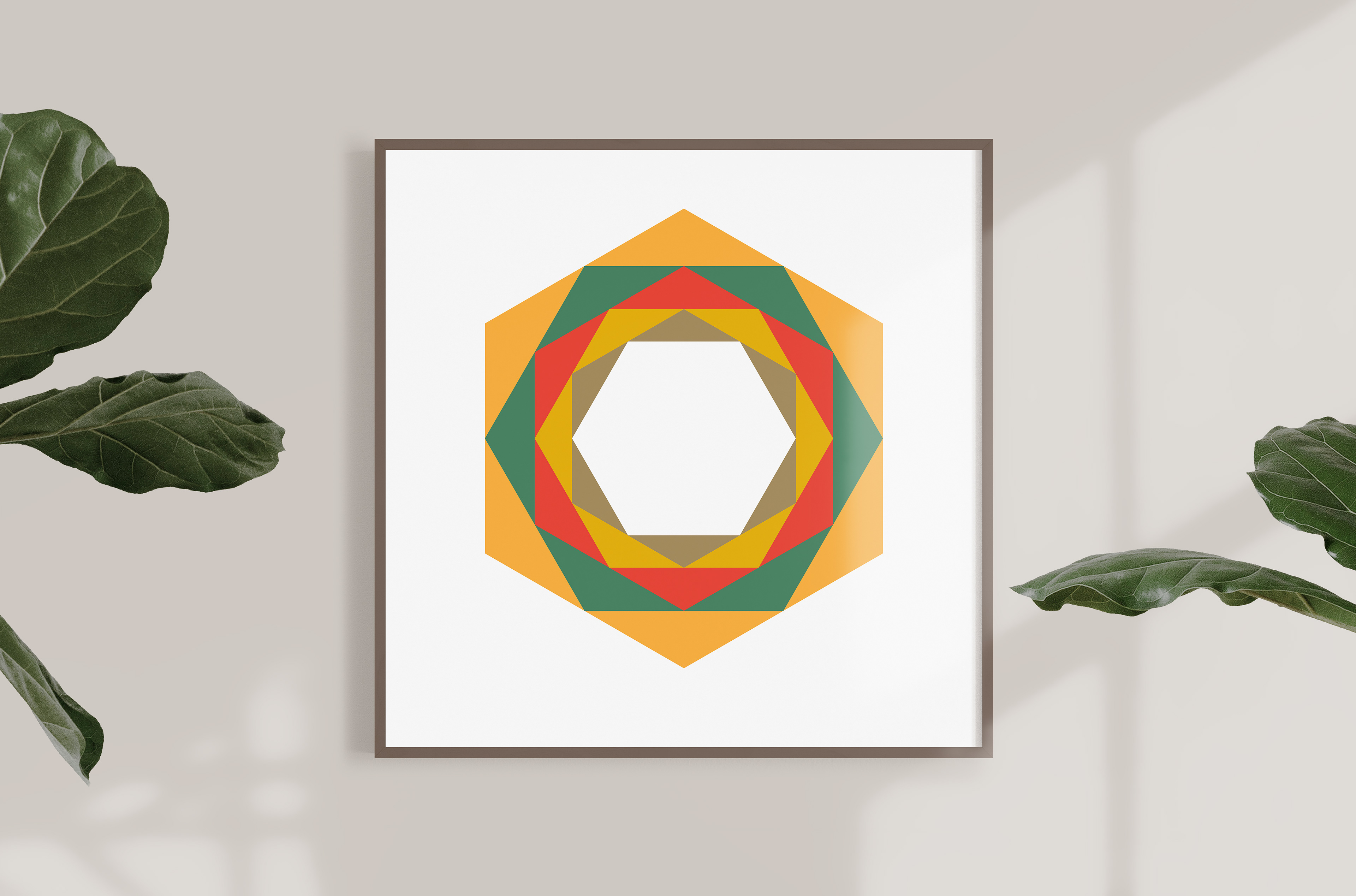 This design is from The Seasons series which shows six descending hexagons using five Pantone special colours to represent the season Autumn.