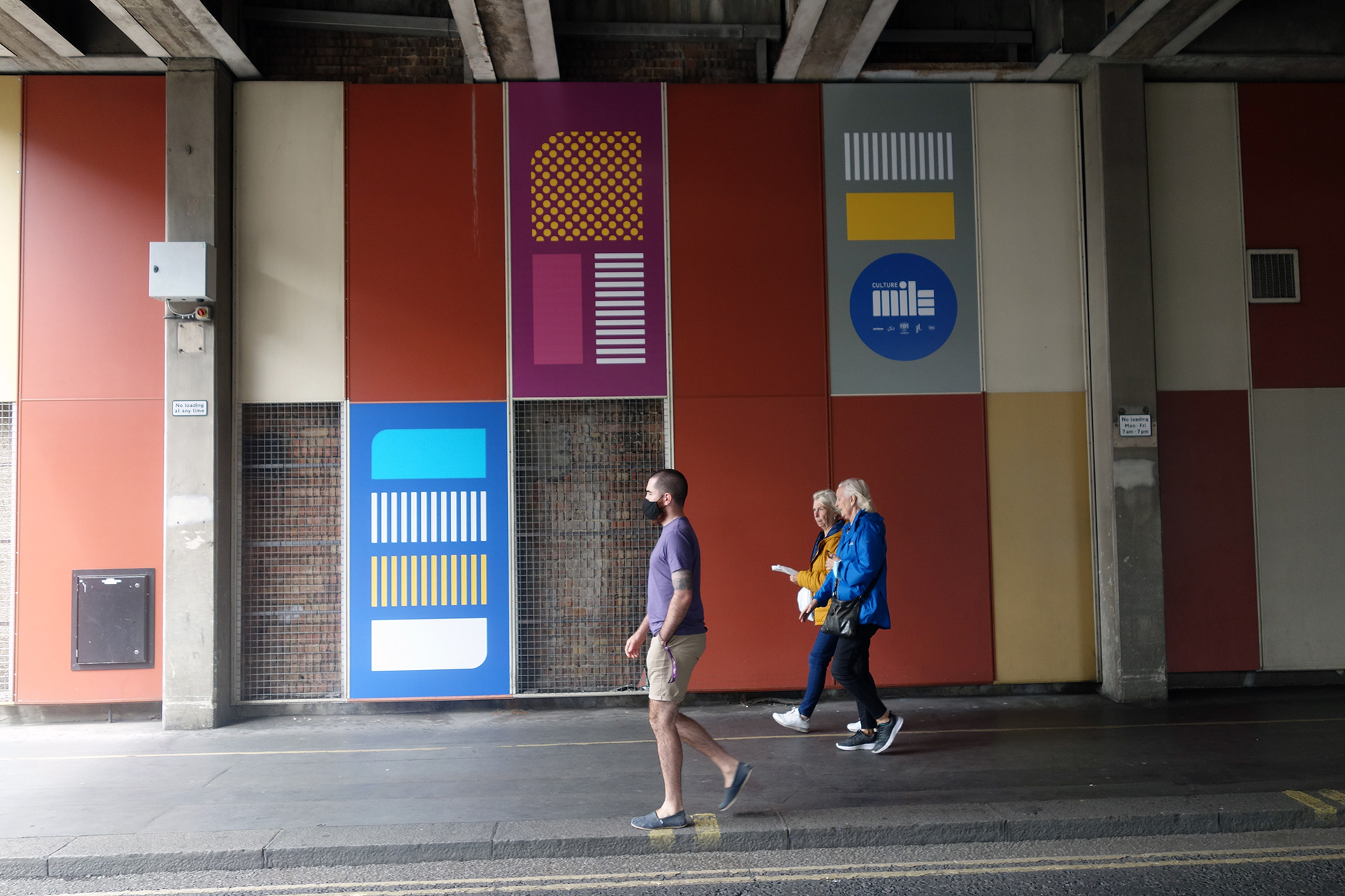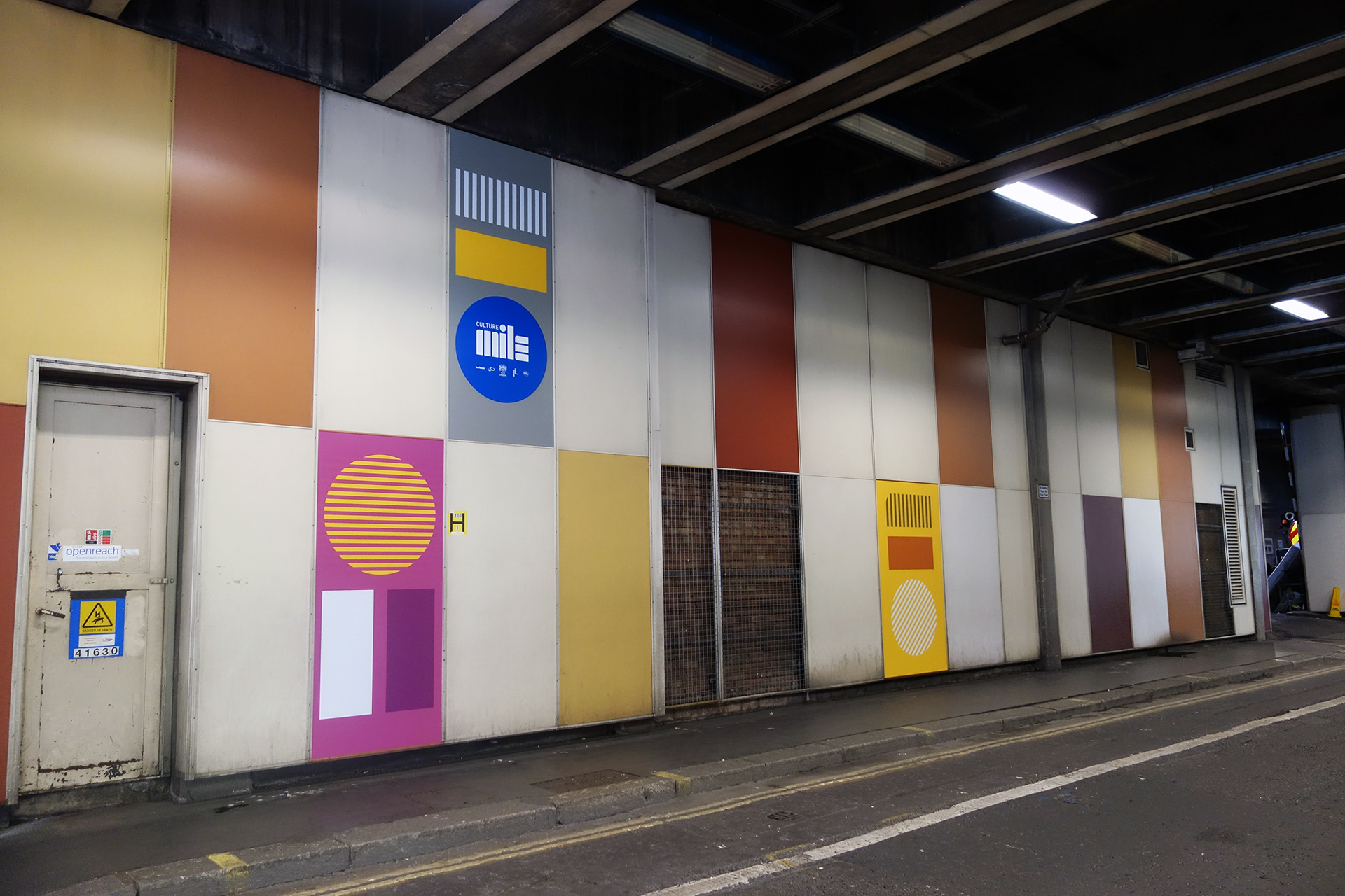 Along the length of the Barbican underpass Beech Street, panels have been 'decorated' with the new Culture Mile designs. Fabrication and installation by Glyphics.