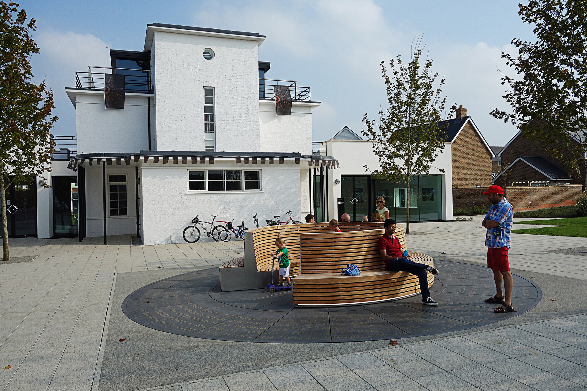 • A seven-metre cast steel roundel featuring stencilled narratives – RAF pilot slang in the centre, surrounded by community memories of life around the airfield.