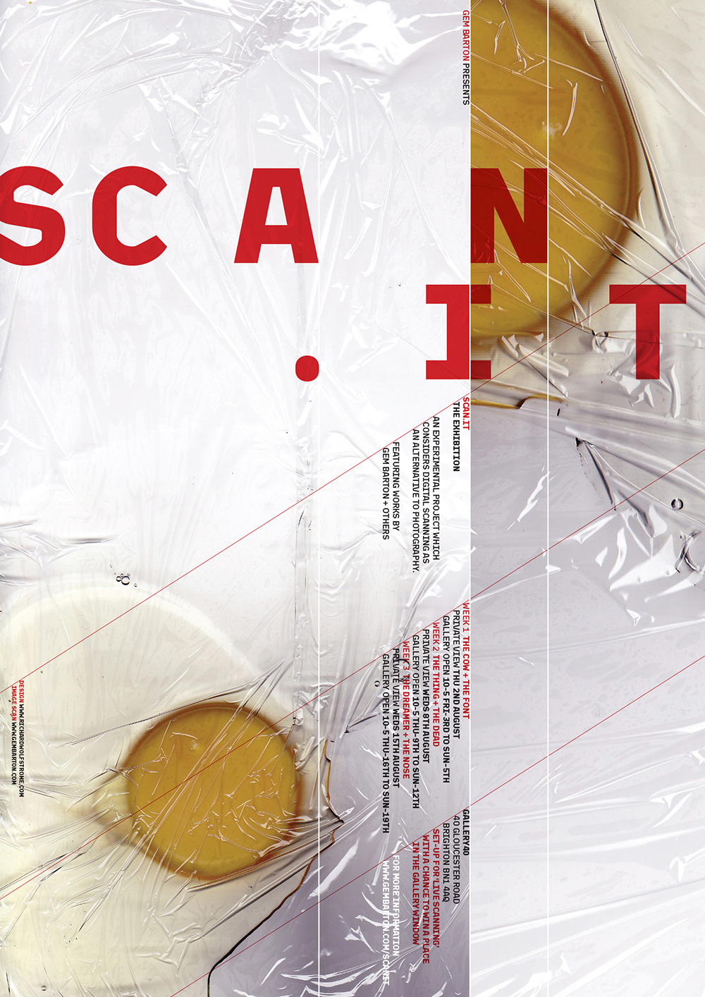 Poster for an experimental project and exhibition which considers digital scanning as an alternative to photography. Featuring works by Gem Barton + others.